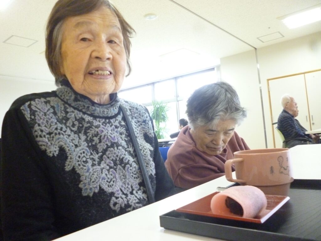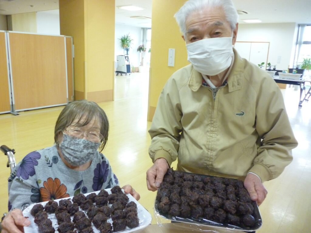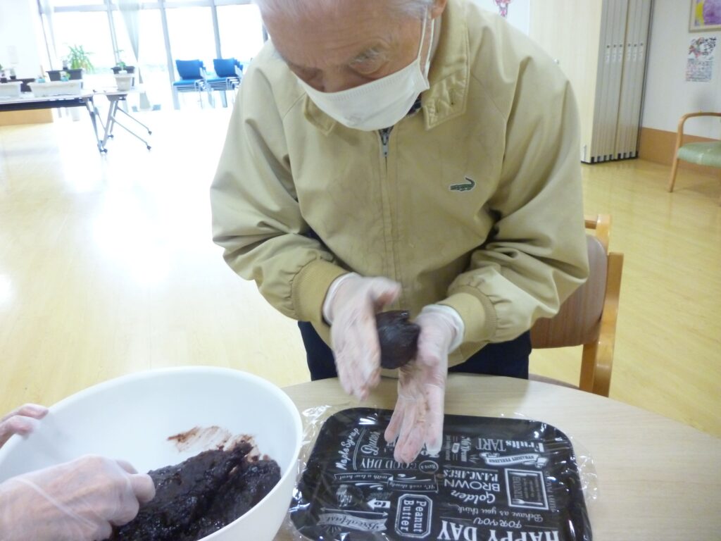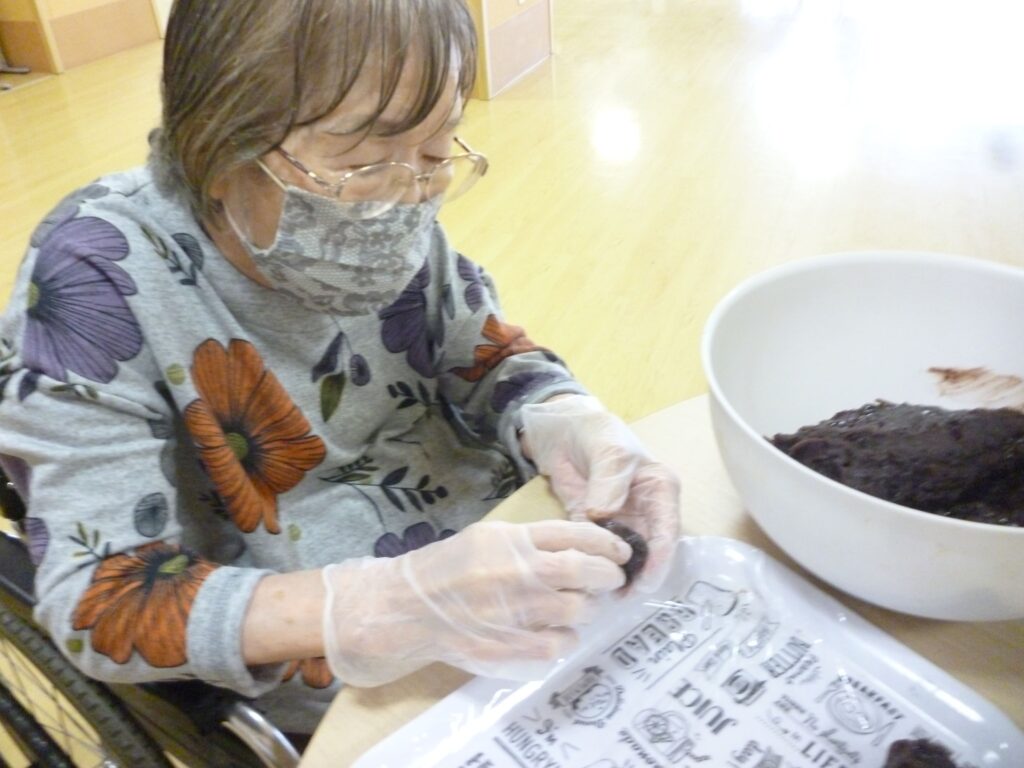 元和菓子職人の利用者様に手伝っていただきながら