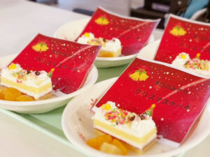 この日は、職員がひとつひとつ心を込めてケーキの飾り付けをし、