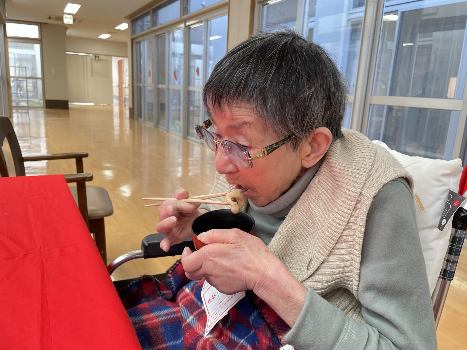 しめくくりは、三清荘神社から振る舞われたぜんざいを、みなさん「おかげがもらえました」と、美味しそうに食べられました。今年も一年、元気に過ごせますね!!