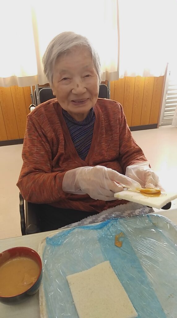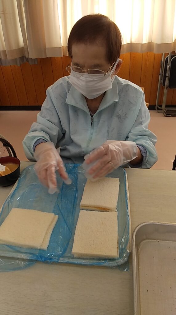 本日の手作りおやつは【きなこクリームサンド】です\(^o^)/