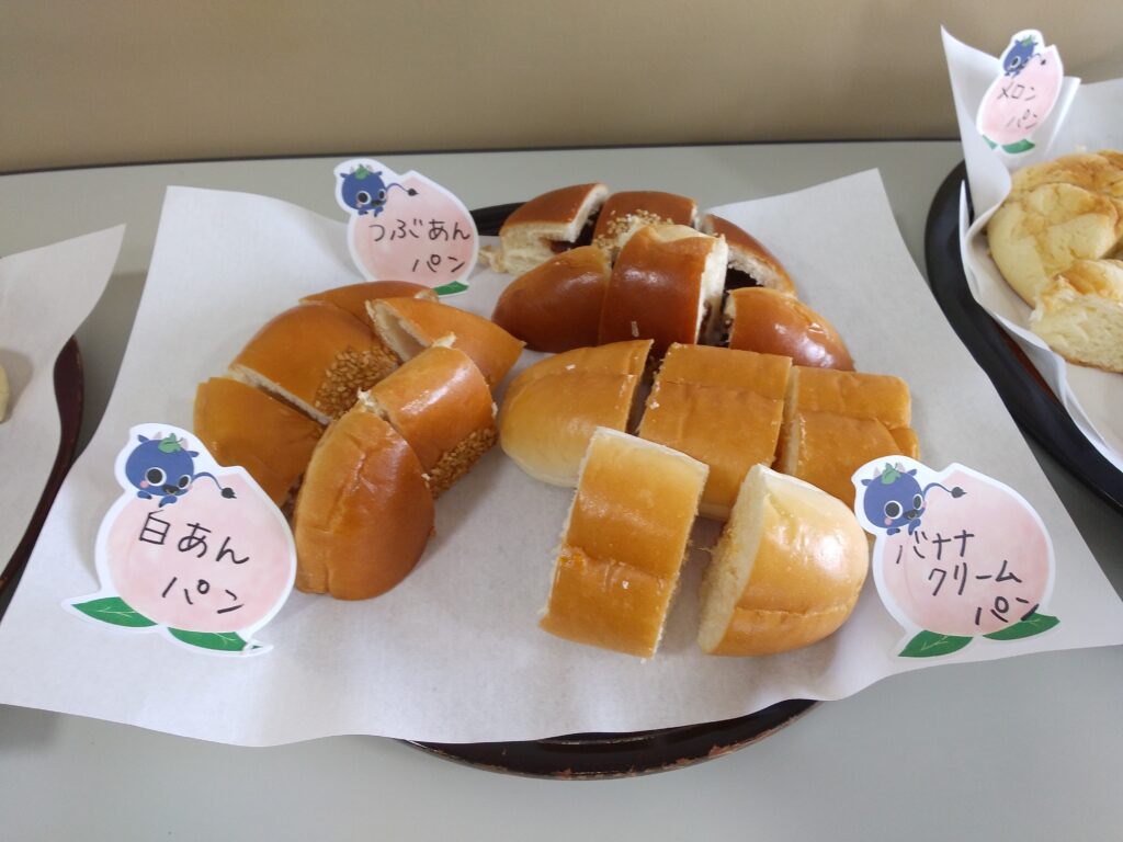 つぶあん、白あん、バナナクリームパンなど7種類のパンをご用意しました🍞🥖✨
