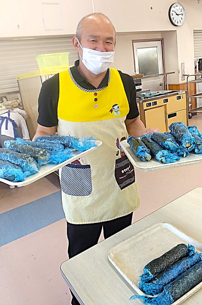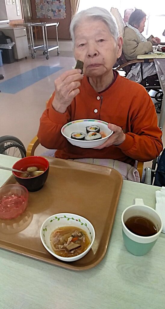 出来上がった恵方巻きは厨房でカットしてもらいお昼に食べていただきます🍽️