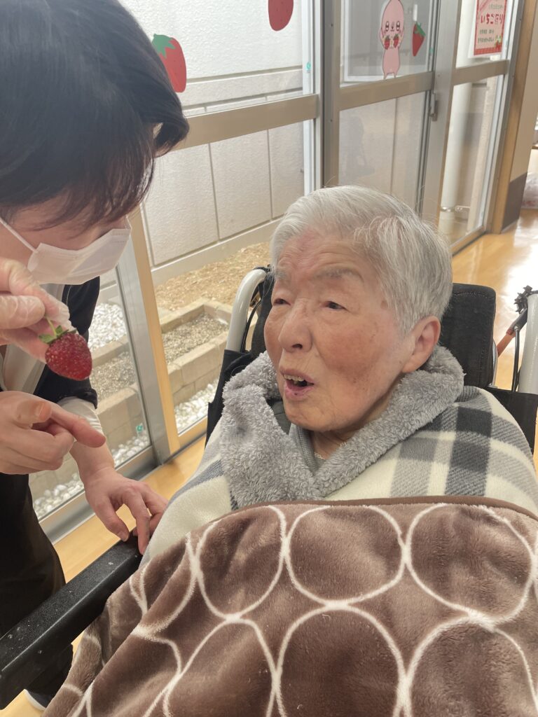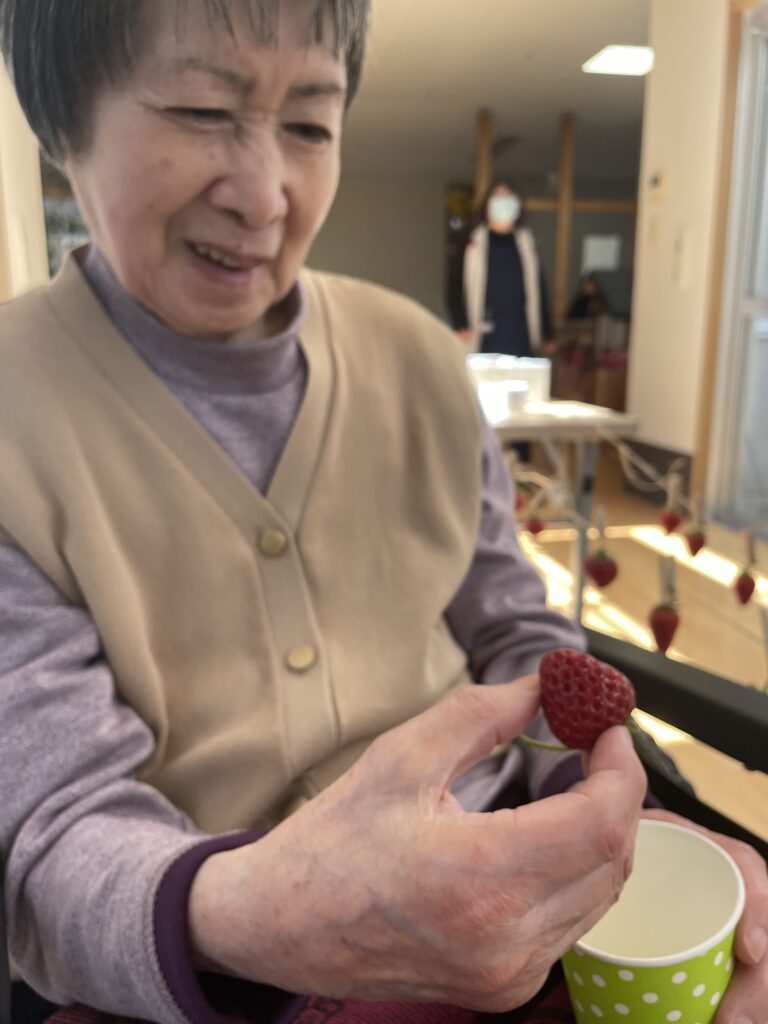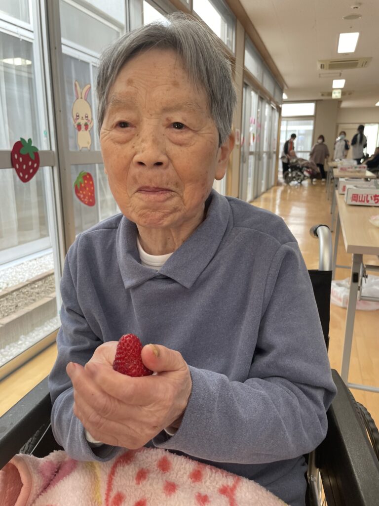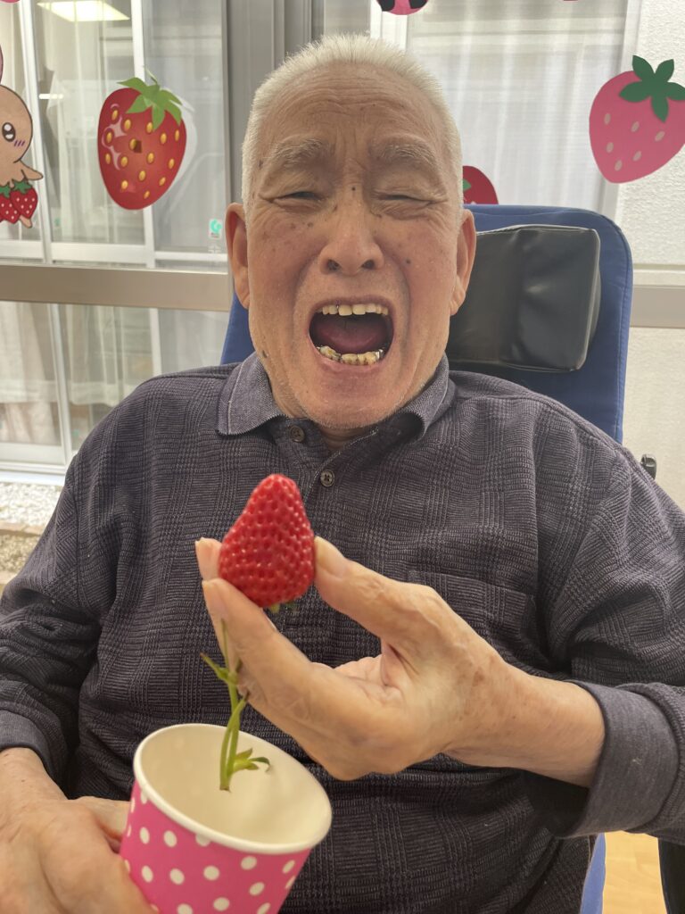 皆さん「きれいな苺じゃわ!」「大きいなぁ!」「甘いねぇ😊」と言われ、お腹いっぱい食べていました( *´艸`)