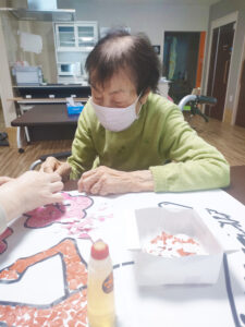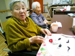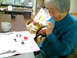 あるユニットでは、福笑いをされていました。他の方の福笑いを見て、笑顔になっている方も…!