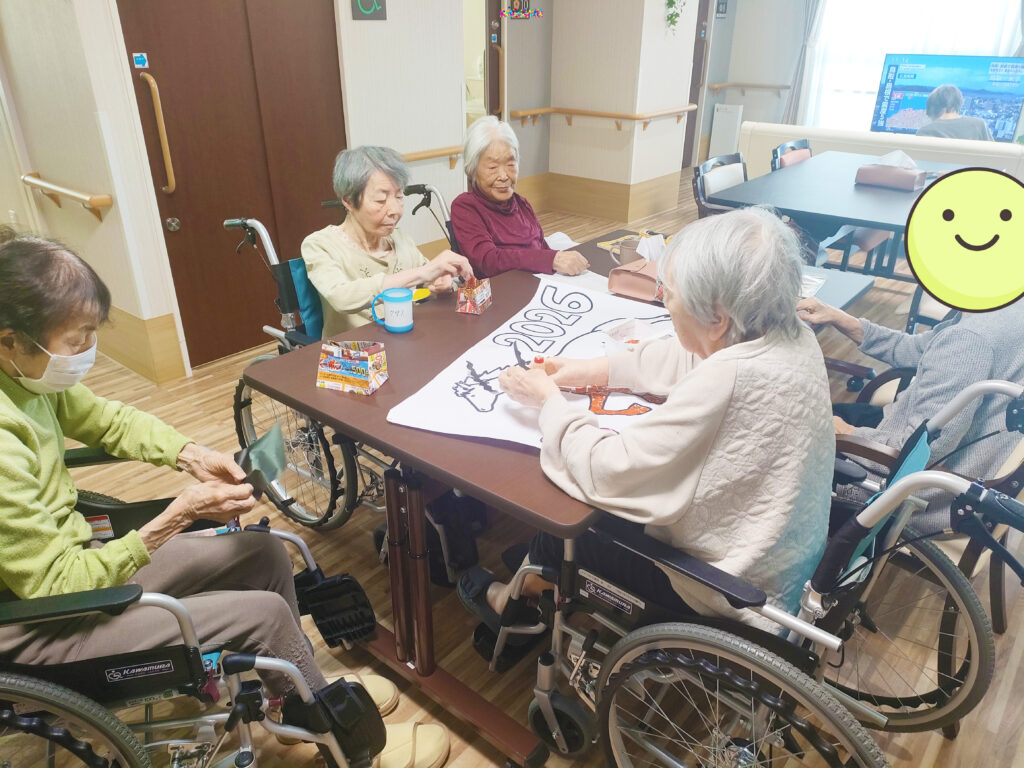 入居者様に年賀状を配り、とても喜ばれていました!(満面の笑み😄😄)
