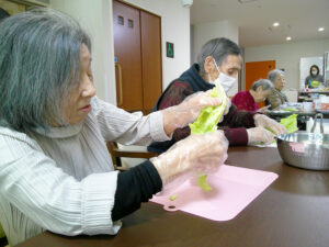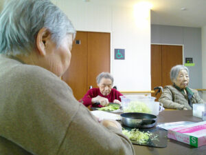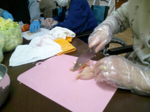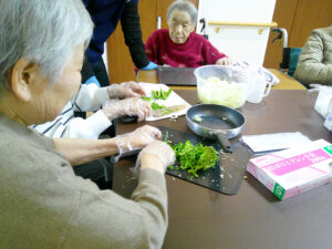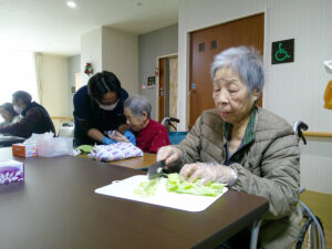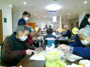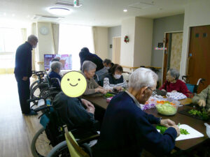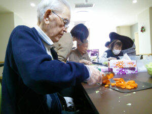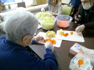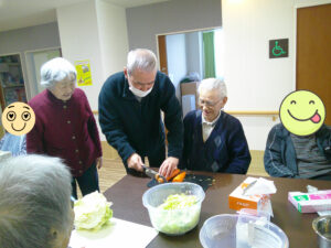 当日は、焼きそばを食べる前に入居者様と一緒に具材を切りました🎶