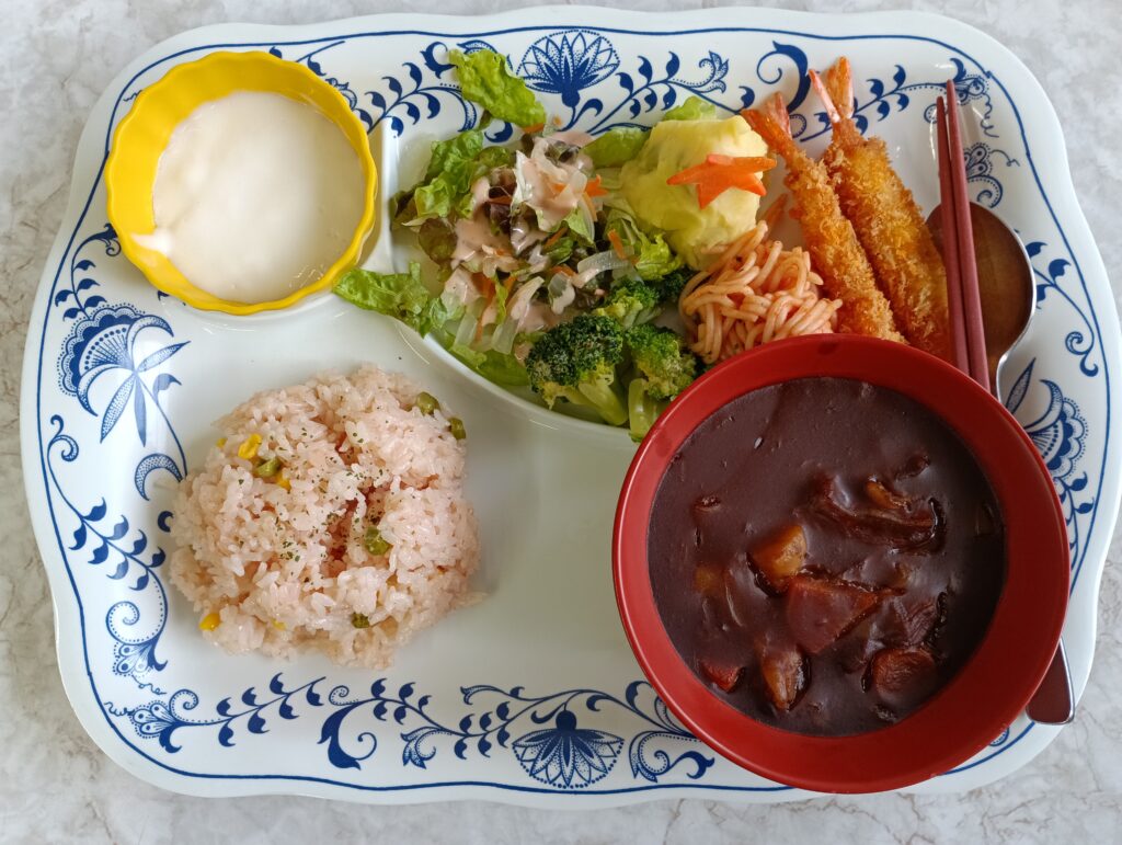 ビーフシチューやエビフライは、珍しいメニューで、皆さん喜ばれていました😋
