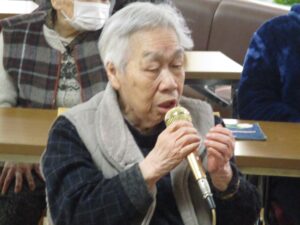 お食事に続いて、入所者様によるカラオケを🎤🎵