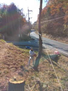 しかし、しかし、これまでの木と全く違い、倒す角度を違えると、電柱を倒したり、電線を切ってしまう可能性も・・・。
