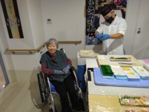 利用者さんの目の前で、魂込めて握っていただきました。