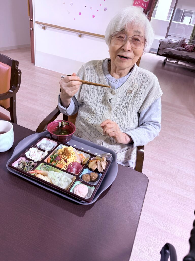 まだ篠路は桜が開花されておりませんが…本日4月22日の昼食のお花見弁当をご紹介させていただきます!