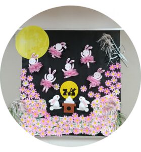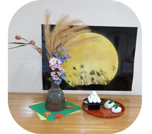 しゅくがわら三清荘にも 中秋の名月の飾りが完成