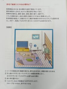 転倒リスクチェック表や予防対策、消費者安全課の啓発用チラシなど
