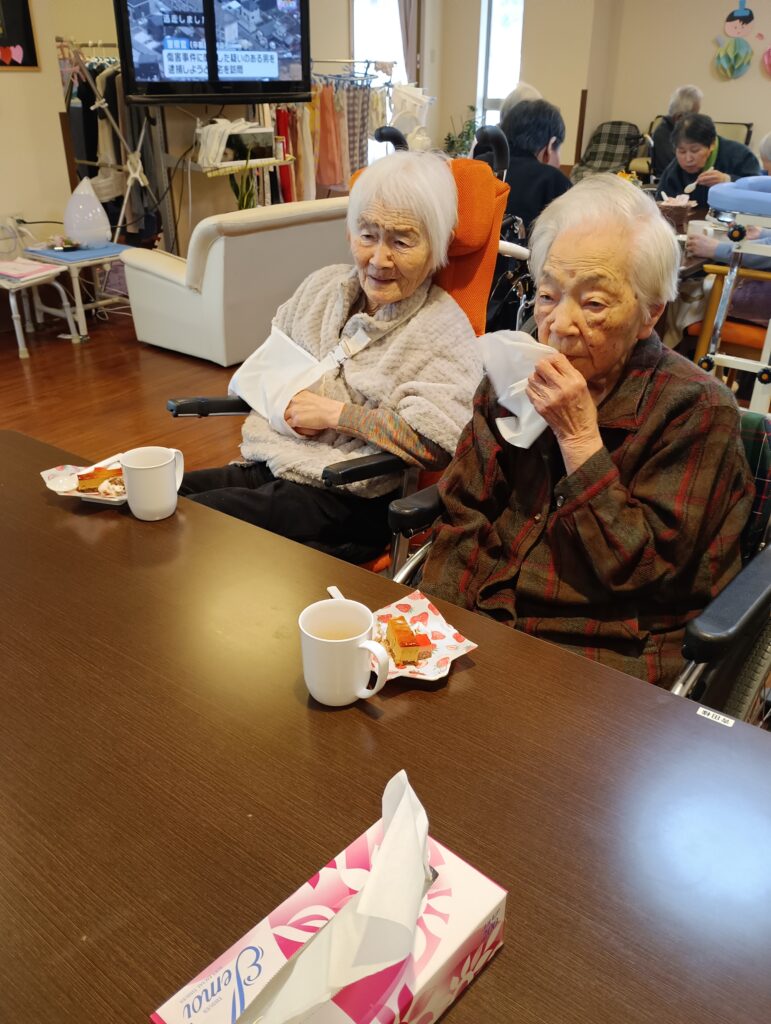まずは、2月24日と26日に(ムースケーキ)と3月(三色ババロア)喫茶☕を各ユニットにて開催しましたので、ご紹介させて頂きます。いつもと違うおやつに皆さん喜ばれペロリ👅 と召し上がられました💛